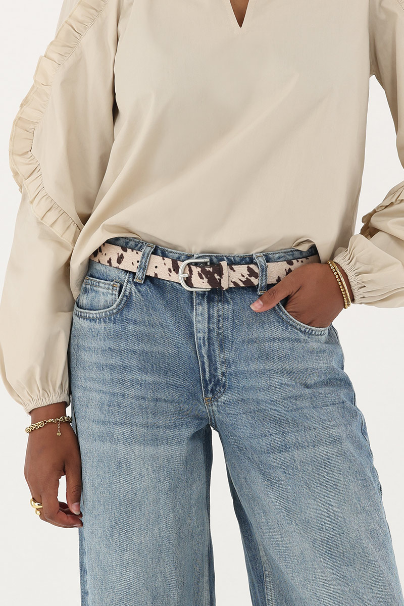 Beige riem met koeienprint