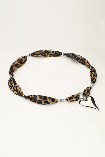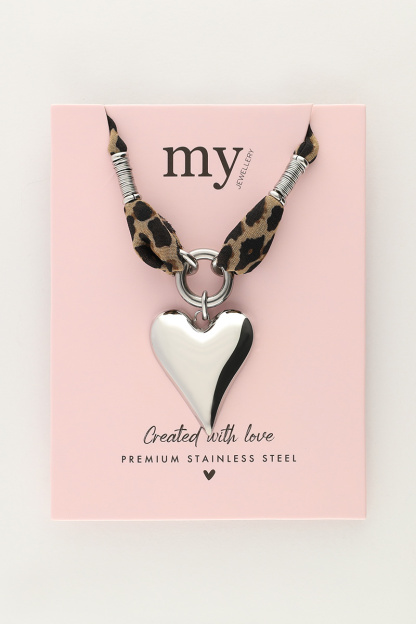 Panterprint cord ketting met statement hart