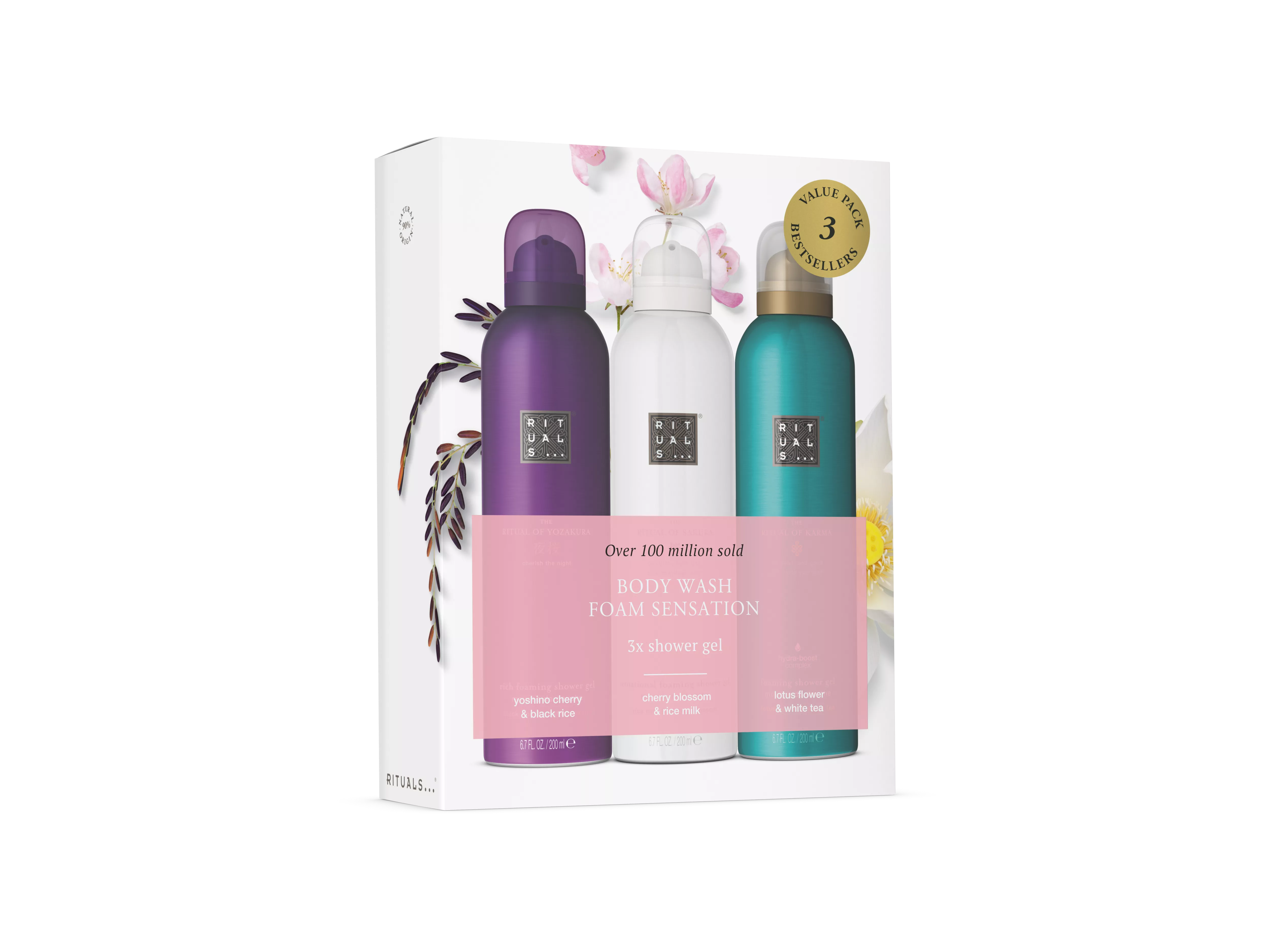 Met deze shower foam gift set ervaar je drie luxe geuren: The Ritual of Sakura, The Ritual of Yozakura en The Ritual of Karma. Iedere shower foam is verrijkt met voedende ingrediënten om je huid zijdezacht, egaal en verfrist achter te laten.